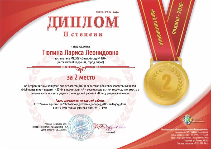 "Моё призвание - педагог - 2016" в номинации "Я-воспитатель и этим я горжусь, что вместе с детьми жить на свете учусь!"