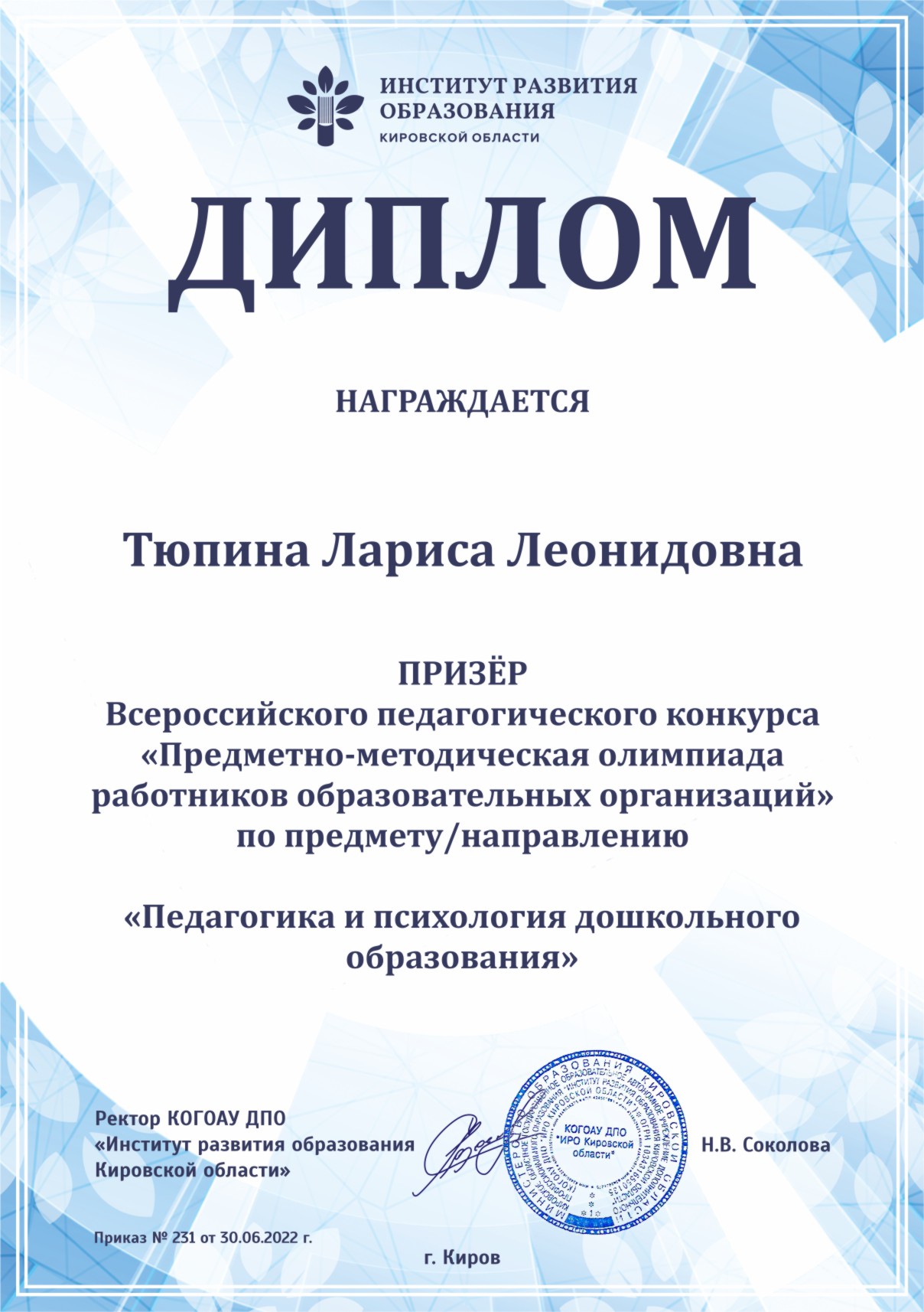 "Предметно-методическая олимпиада работников образовательных организаций по предмету/направлению "Педагогика и психология дошкольного образования"